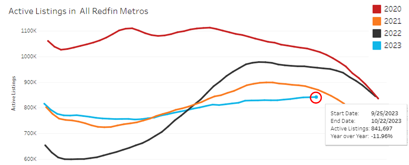 Meanwhile, the inventory of active listings has slowly been rising, but it is still down nearly 12% since this time last year.