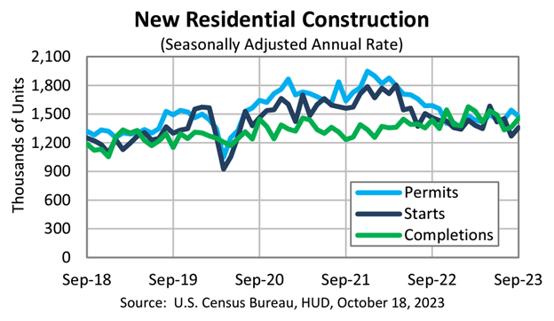 Builders still face significant labor shortages, too. While there’s not a shortage of projects, there’s an increasing challenge to find qualified workers to complete these jobs. On top of that, construction equipment prices are up by 12.2% since 2022. As you can see from the chart below from census.gov, housing permits and starts have fallen quite a bit since last year, and completions have remained relatively flat. If permits and starts are falling, we will start to see completions fall in the coming months, as well.