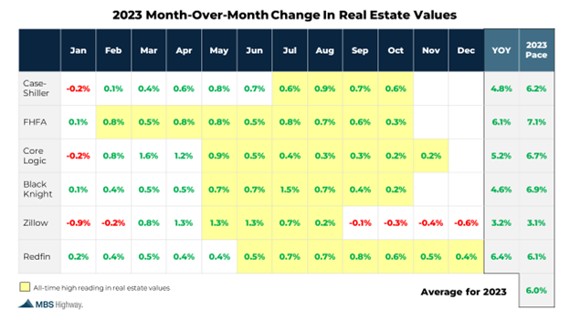 Even the Zillow Home Value Index, which is usually the most conservative measure of the popular home price indexes, is showing 3.2% positive home appreciation in 2023.