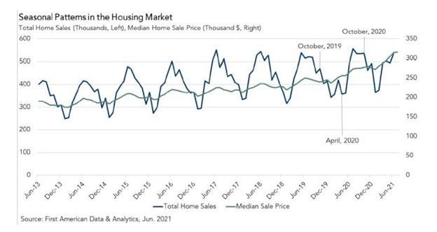 The chart below from jpking.com shows Total Home Sales and Median Home Sale Price from June 2013 - June 2021, and it illustrates that this ebb and flow always plays out with remarkable consistency.