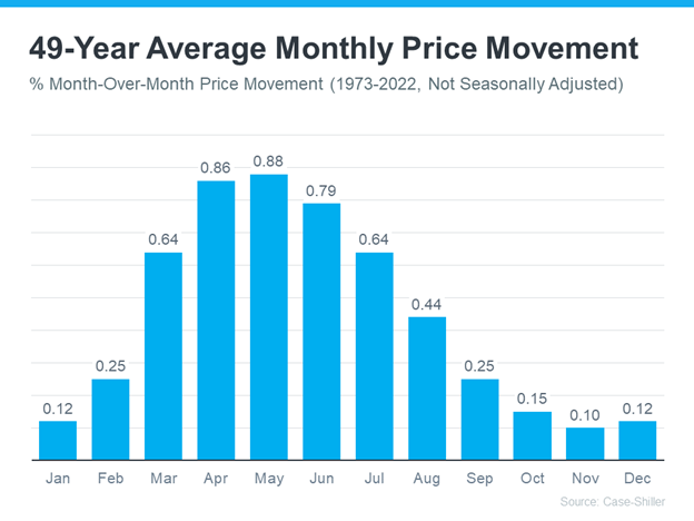 As the data shows, at the beginning of the year, home prices grow, but not as much as they do in the spring and summer markets. As the market transitions into the peak homebuying season in the spring, activity ramps up, and home prices go up a lot more in response. Then, as fall and winter approach, activity eases again. Price growth slows, but still typically appreciates.