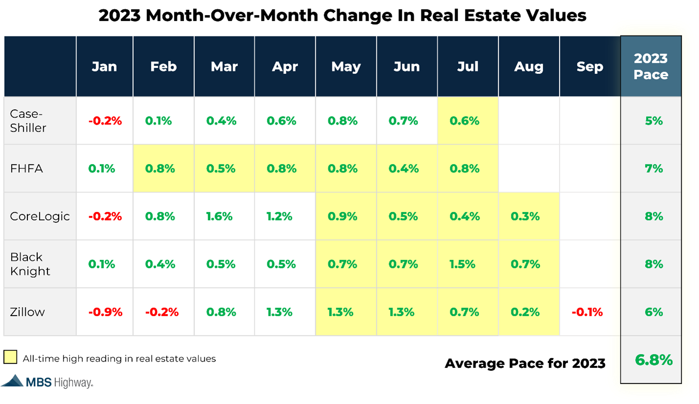 Even with the slowdown in the market, home values are still up considerably for the year. Depending on which report you look at, we are still on track to see between 5 and 8% cumulative appreciation for 2023.